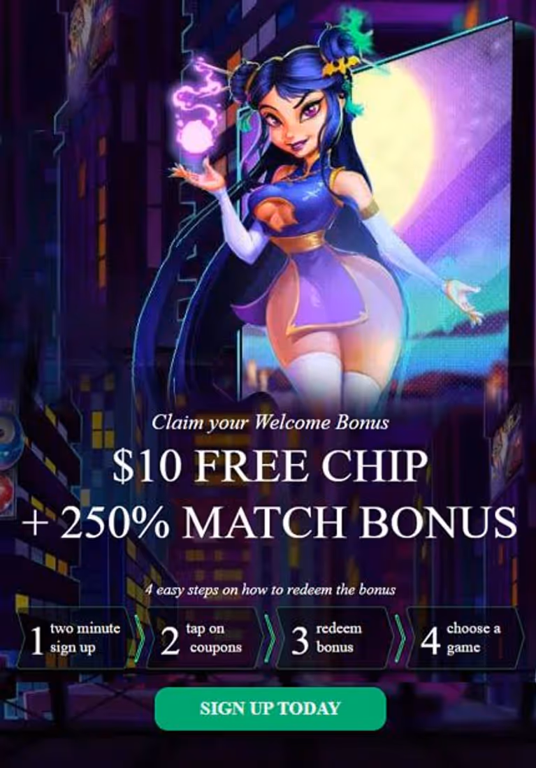 - Casual players or beginners: start with the $10 free chip or a low-playthrough 100% match to learn rules without long wagering chains.